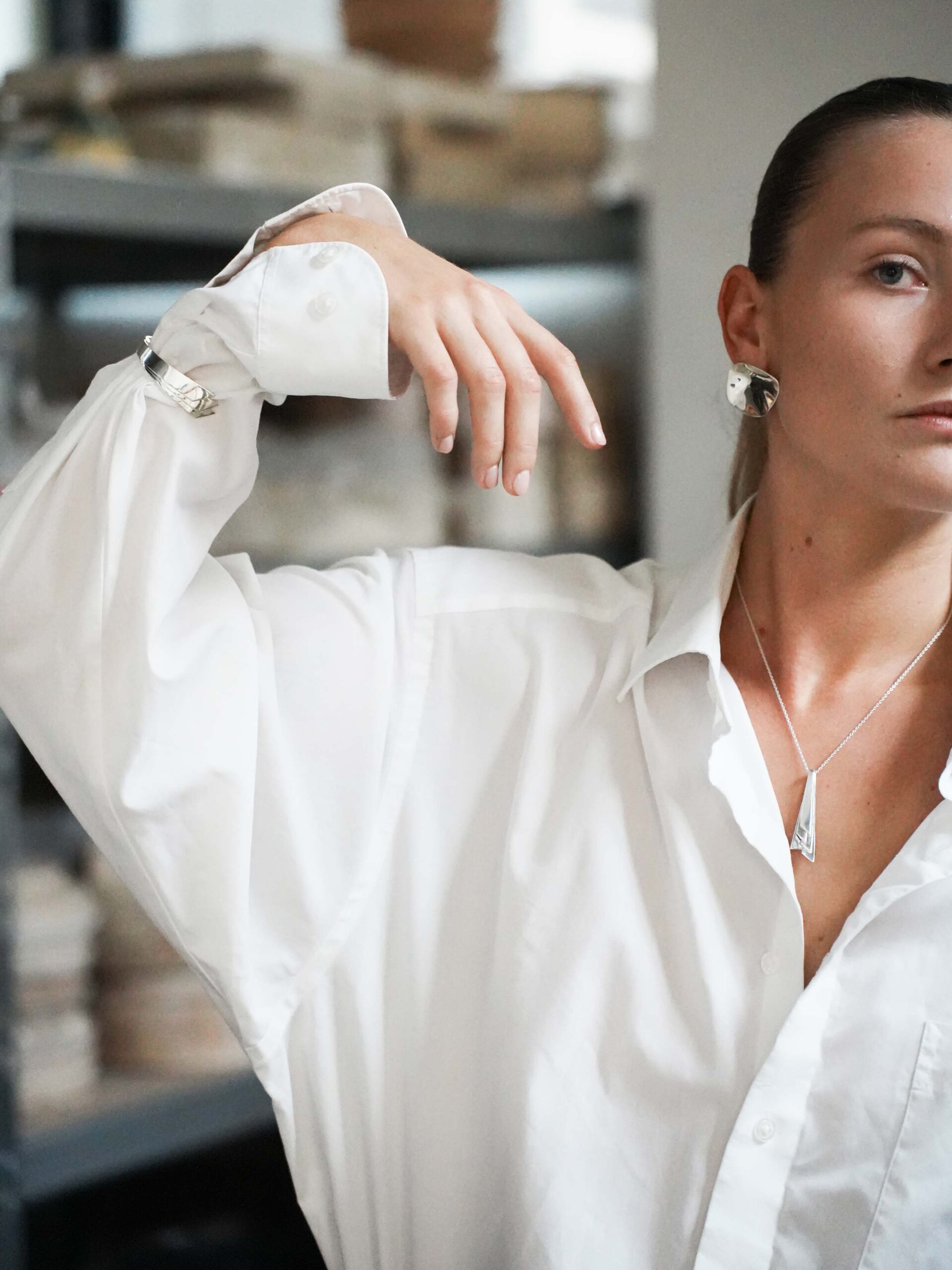 Handcrafted from recycled sterling silver, this sculptural pendant is inspired by Carlo Scarpa’s Tomba Brion. Part of The Eternal Echoes Collection, it reflects intricate detailing and timeless elegance. A contemporary heirloom celebrating harmony, love, and refined Danish craftsmanship.